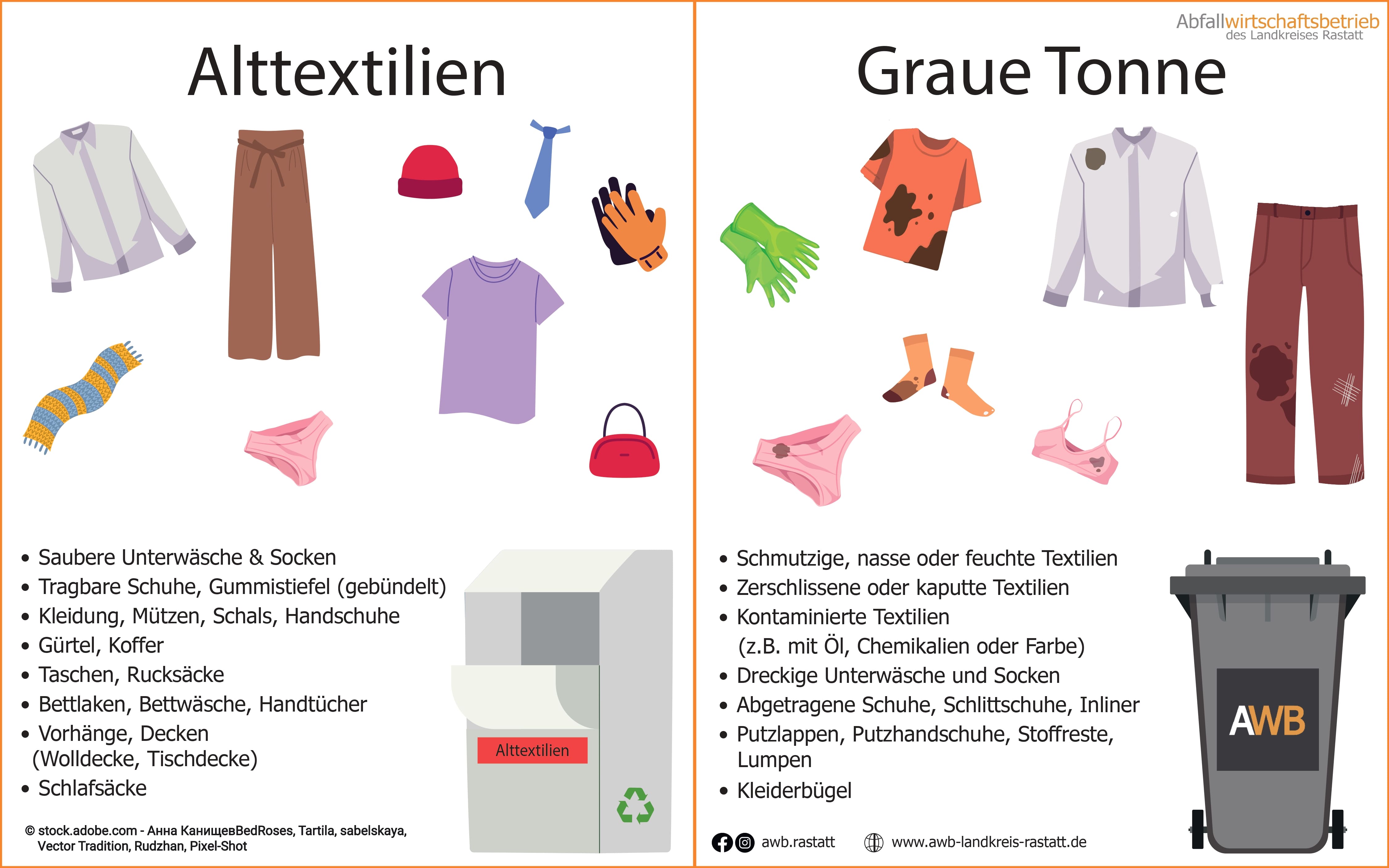 Alttextilien und Altschuhe sind viel zu schade für den Restmüll- durch richtige Entsorgung können wertvolle Rohstoffe wiederverwendet werden.