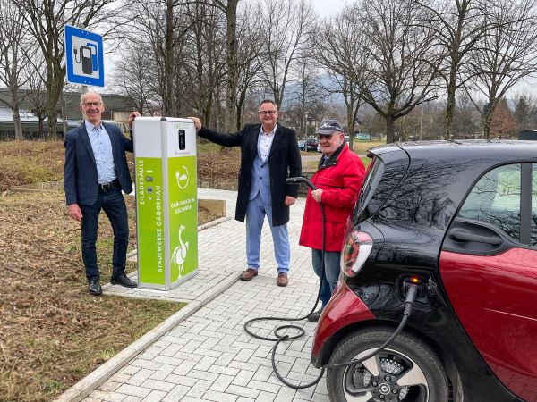Bürgermeister Robert Wein und der Bereichsleiter Markt der Stadtwerke Gaggenau, Marc Marquardt, führten gemeinsam die symbolische Inbetriebnahme durch. "Elektromobilität spielt eine entscheidende Rolle in der Energiewende. Damit das Fahren mit Strom wirklich erfolgreich sein kann, ist der Ausbau der Ladeinfrastruktur unerlässlich. Wir freuen uns, dabei mit den Stadtwerken Gaggenau einen verlässlichen Partner an unserer Seite zu haben," erklärte Robert Wein, Bürgermeister der Gemeinde Bischweier.